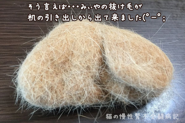 そう言えば・・・猫(みぃやさん)の抜け毛が引き出しから出て来ました(゚ー゚;