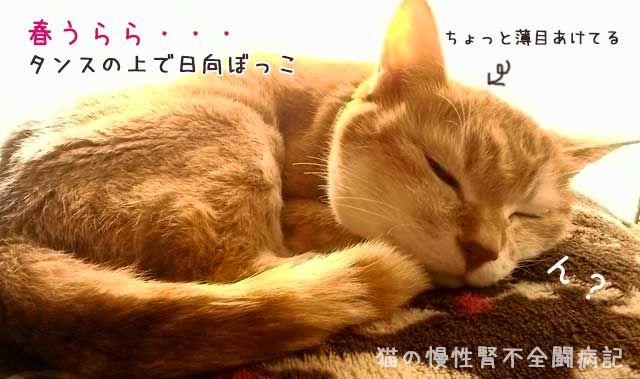 そして、1月から3月まで、いけないことかも知れませんが食欲増進剤を飲ませ、奇跡的に普通の生活になっていました。他にも猫がいるため、腎臓食は与えていませんでした。